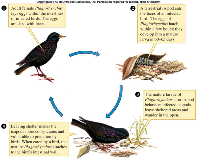 A complex, three way interaction that insures the survival of the Plagiorhynchus worm.