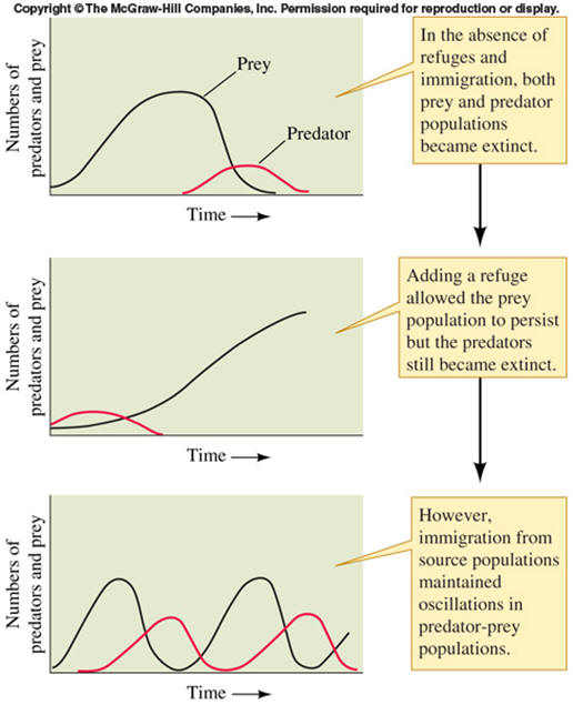 In the lab, a predatory Paramecium and a prey protist (Didinium) can be "made" to fluctuate, but only if the Didinium is given a refuge and if the Paramecium can be supplemented from time to time with "immigrants".