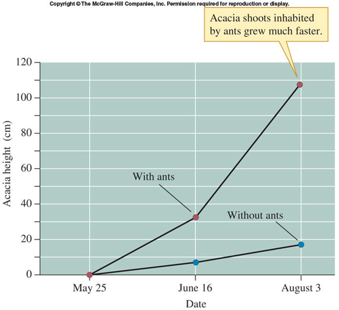Acacia plants inhabited by ants grew much faster, suggesting this is truly
