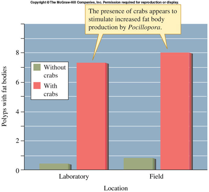 When crabs are present, corals produce more fat bodies, suggesting the corals
