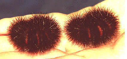 Two last instar larvae in defense posture, © James Adams, 2001.