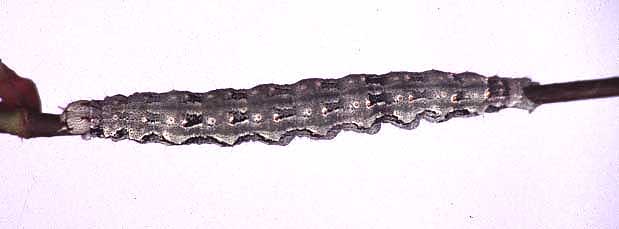 Last instar larva, dorsal (top) view, © James Adams, 2001.
