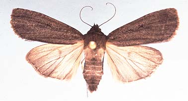 Though faint in this picture, the black lined lunules toward the end of the discal cell of the forewing are diagnostic for this species; © James K. Adams, 2002.