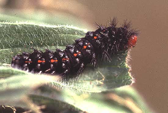 Larva on Plantain (Plantago sp.), © James Adams, 2001.